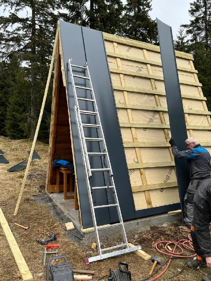 Další útulna těsně pod Klínovcem čeká na dokončení. „Až to počasí dovolí, položíme střechu a dřevěné pódium na spaní. Na jaře bude hotovo,“ upřesňuje Václav Bašta, severočeský ředitel Lesů ČR.