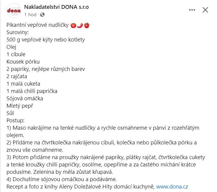 RECEPTY Z KUCHYNĚ: Pikantní vepřové nudličky