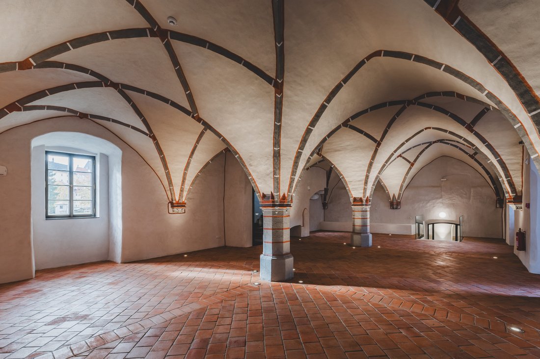 - – a budova ústřední – architektonický unikát, goticko-renesanční PALÁC hraběnky Anny z Rogendorfu s rozsáhlou stálou expozicí života v podzámčí i galerií.