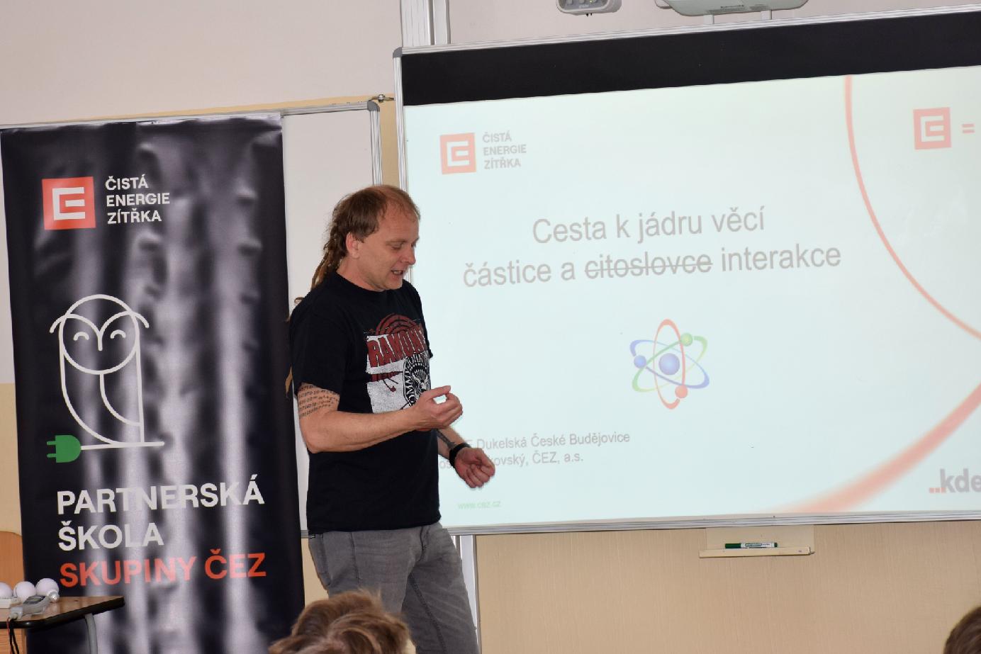 Konkrétní práci s mlžnými komorami předcházely krátké tematické přednášky ředitele školy, specialisty strategického náboru Skupiny ČEZ Josefa Kaňkovského a docenta Jaroslava Bielčíka z jaderně a fyzikálně inženýrské fakulty pražského Českého vysokého učení technického. „ČEZ i fakulta se shodujeme v tom, že mlžná komora je výborným edukačním nástrojem, který studentům umožňuje vizualizaci ionizujícího záření zobrazením drah částic záření, které všude kolem nás,“ zdůraznil Kaňkovský.