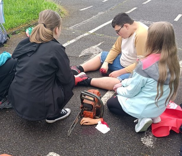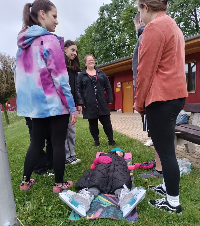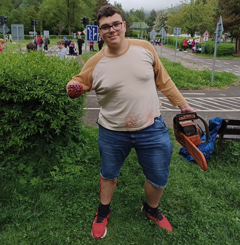 Letos jsme připravili i nesoutěžní stanoviště, kde bylo velmi důležité zhodnocení situace. Soutěžící tak měli možnost setkat se s nebezpečným agresorem anebo s hádankou, zda lední brusle na nohou začátkem května znamenají, že první pomoc již poskytovat nemusíme J