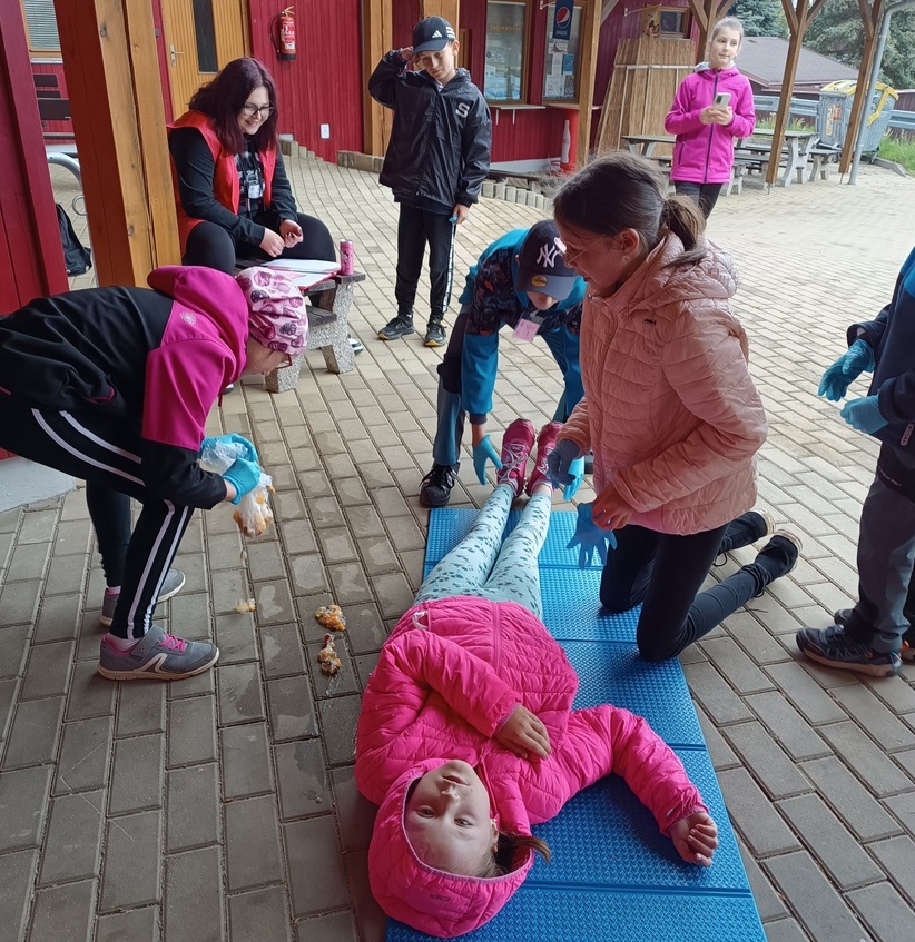Někomu se dařilo lépe, někdo se nechal zaskočit, někdo měl kolem sebe početné obecenstvo… Na soutěžních stanovištích se děti setkaly nejen s ošetřením různých poranění, musely si poradit s otravou léky, amputací ruky, poraněním kloubů, transportem zraněných, obvazovou technikou a také s hasičskými dovednostmi.