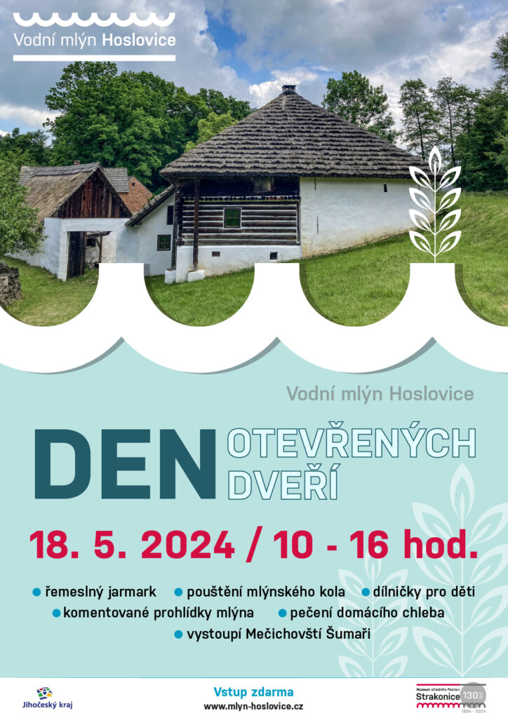 Den otevřených dveří ve strakonickém muzeu a ve vodním mlýně v Hoslovicích s programem.