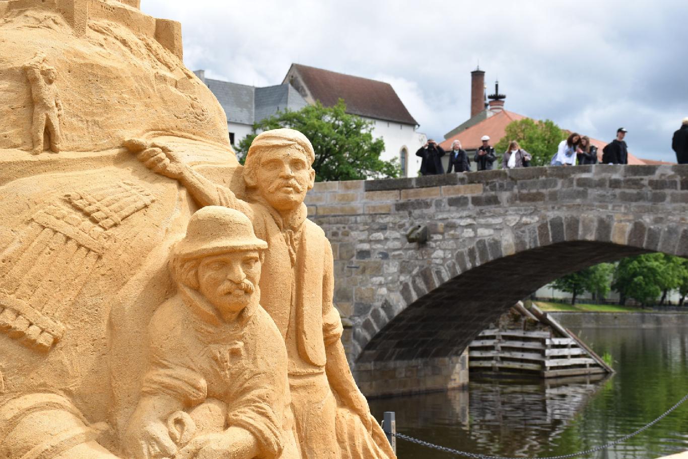 Pět obřích pískových soch na téma „Voroplavba: příběh dřeva, řeky a lidí“ již zdobí náplavku u Kamenného mostu. Díla, která dnes byla slavnostně představena veřejnosti, ukazují kácení vzrostlých stromů, vázání vorů, samotnou plavbu, ale i zastávku vorařů v hospodě. Sochy vytvořili Marian Maršálek a Josef Faltus. Písková díla u Kamenného mostu vyrostla už po osmnácté, náplavku budou opět zdobit do pozdního podzimu.