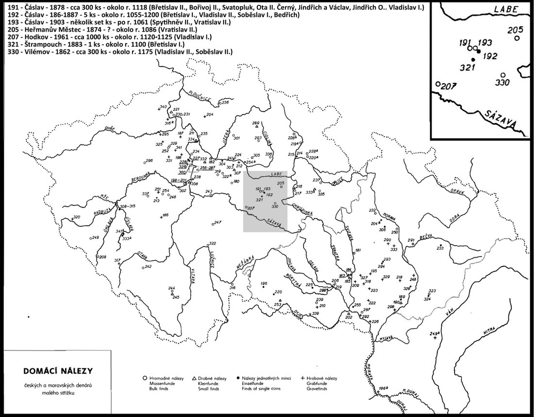Dosud největší raně středověký mincovní depot na Kutnohorsku vůbec čítá více než 2150 mincí, mezi nimiž odborníci zatím identifikovali ražby tří přemyslovských panovníků, krále Vratislava II. a knížat Břetislava II. a Bořivoje II. (cca 1085–1107).