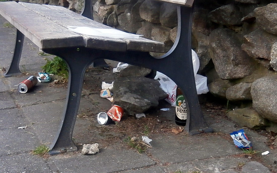 Snímky jsou z několika posledních dnů. Takhle to na místě vypadá takřka každé ráno po odpoledních a večerních mejdanech předchozího dne. Porušování městské vyhlášky o čistotě a pořádku hned v několika bodech – požívání alkoholu v historické části města, odhazování odpadků, ničení veřejné zeleně, močení u keřů, obtěžování okolí hlukem…Hnutí STAN hlásá v předvolební agitaci, že jejich vimperská starostka je úspěšná. Jak a v čem. Ale vynutit si ve městě dodržování obecně závazné vyhlášky a vést tímto směrem také své podřízené nedokáže nebo nechce. Chvála pracovnicím městských služeb, které musejí tento bordel každé dopoledne uklízet.