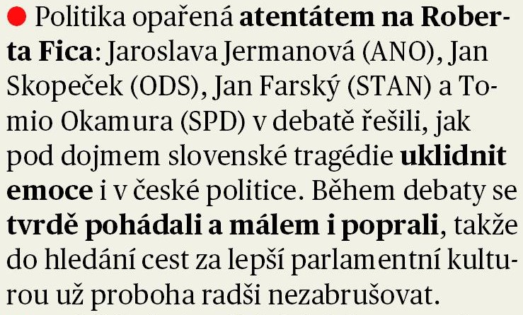 NEDĚLNÍ GLOSÁŘ MIROSLAVA KORECKÉHO – 26. května 2024