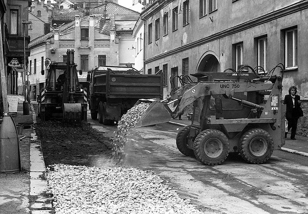 Kaplířova ulice – úpravy povrchu zřejmě po předchozí pokládce plynovodu: