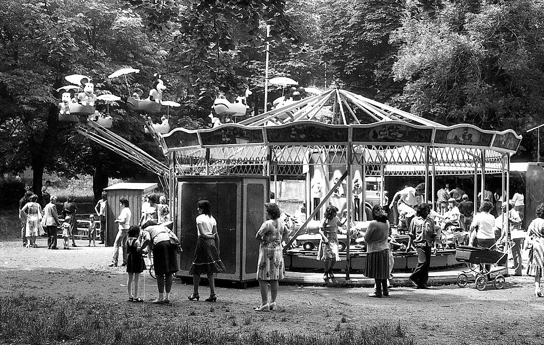 NAŠE MĚSTO VIMPERK – Z HISTORIE: Na kolotoči v parku u školy (1980)