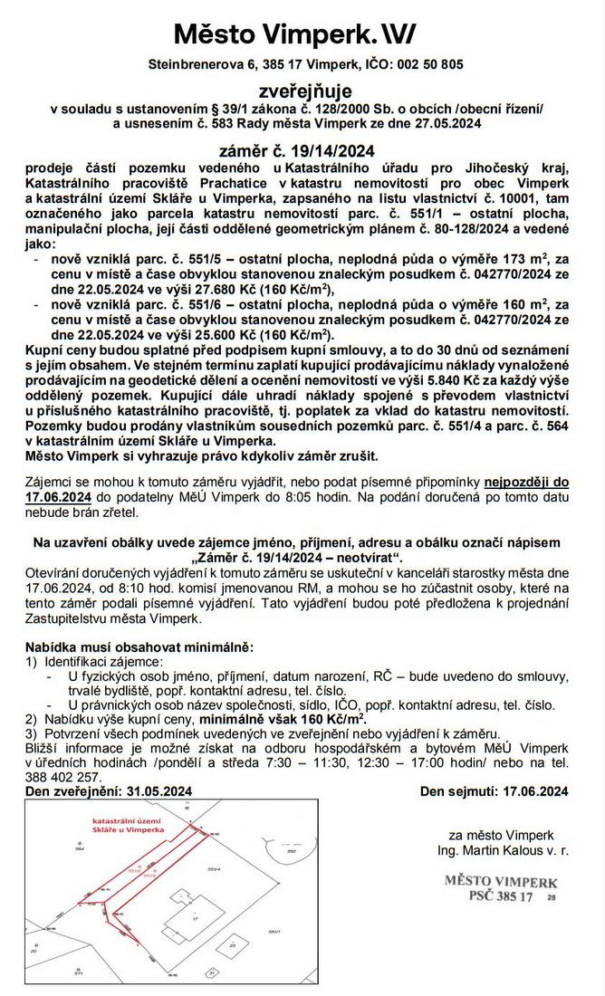 NAŠE MĚSTO VIMPERK: Úřední deska radnice – hospodaření s pozemky