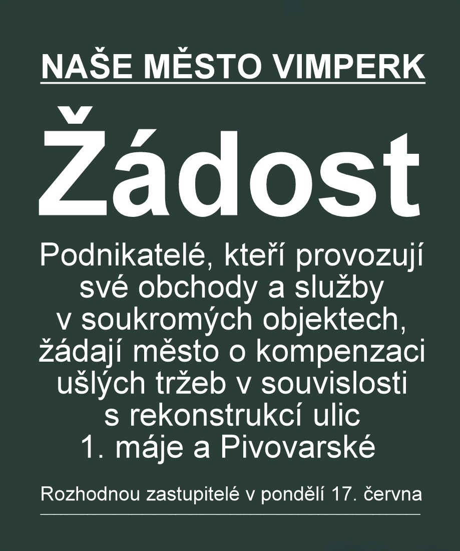 NAŠE MĚSTO VIMPERK: Žádost o kompenzaci ušlých tržeb