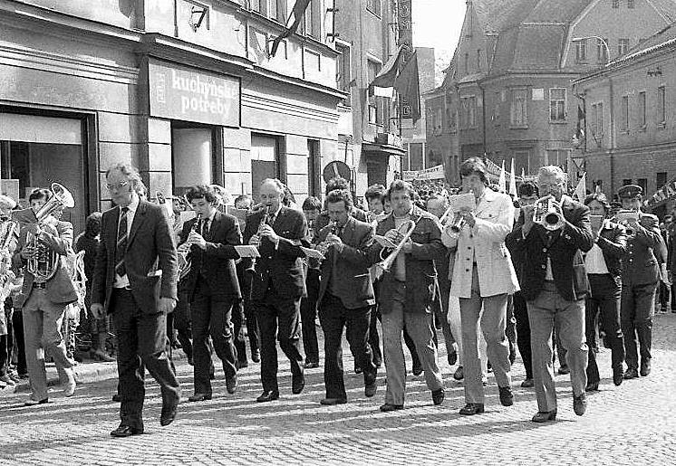 Městská dechová hudba pod vedením Františka Kováře, ředitele lidové školy umění (začátek osmdesátých let):