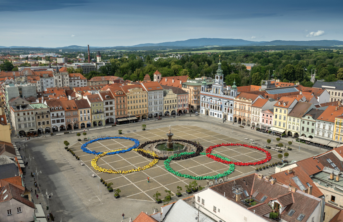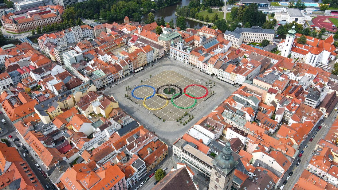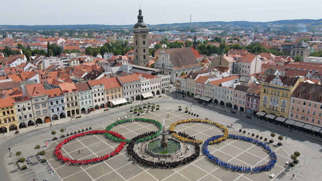 JIŽNÍ ČECHY: Největší multisportovní událost v ČR právě začíná! Náměstí Přemysla Otakara II. se proměnilo v obří olympijské kruhy. A je z toho první rekord!