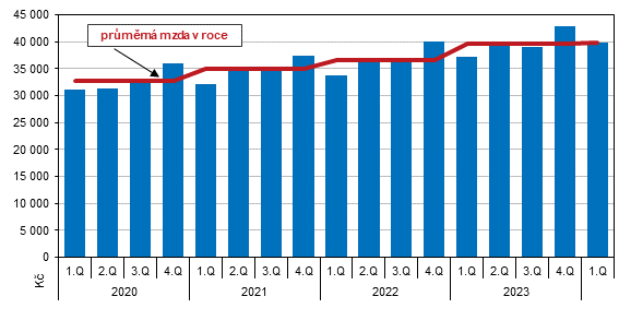 Průměrná měsíční mzda v národním hospodářství celé České republiky v 1. čtvrtletí 2024 měla hodnotu 43 941 Kč, což je o 2 884 Kč více než ve stejném období minulého roku. Ve srovnání s 1. čtvrtletím 2023 vzrostla průměrná mzda v ČR nominálně o 7,0 %. Spotřebitelské ceny se v ČR za uvedené období zvýšily o 2,1 %, a proto mzda reálně vzrostla o 4,8 %.