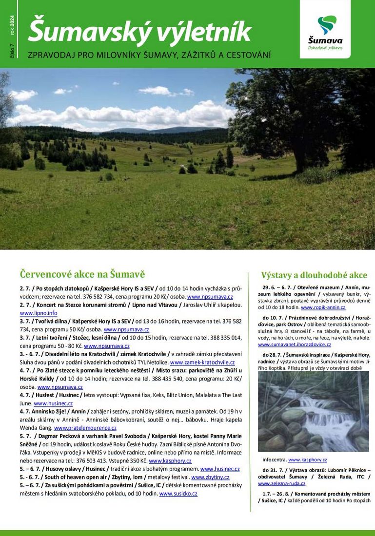 TIPY PRO VOLNÝ ČAS: Šumavský výletník – č. 7/2024