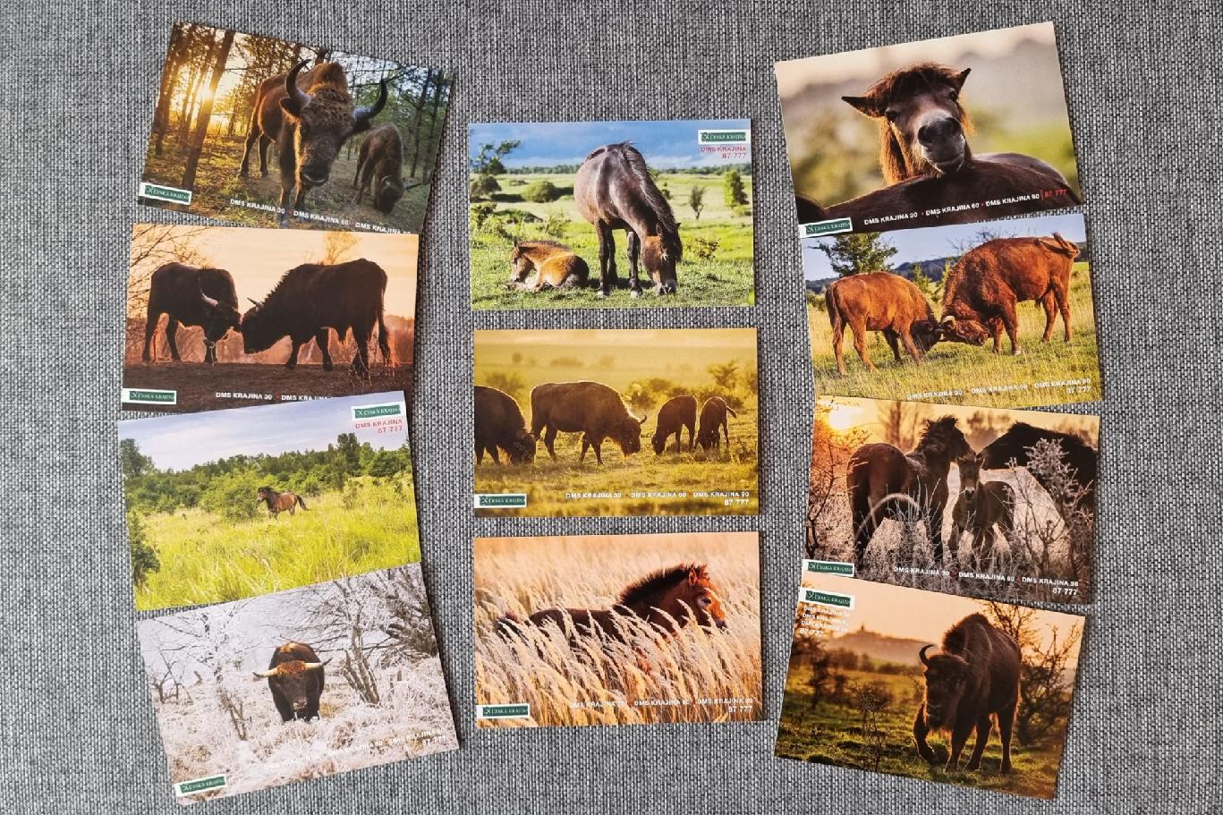 Pohlednice zachycují například souboje mladých zubrů či praturů, hříbě divokých koní v porostu vysokých trav před jejich spasením velkými kopytníky nebo péči klisen o hříbě. Pohledy mohou návštěvníci rezervace získat například v Turistickém informačním centru Milovice na Náměstí 30. června.