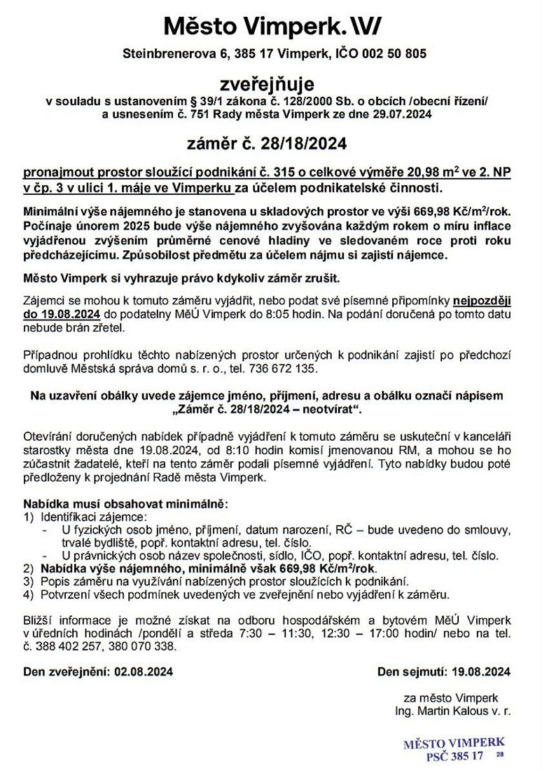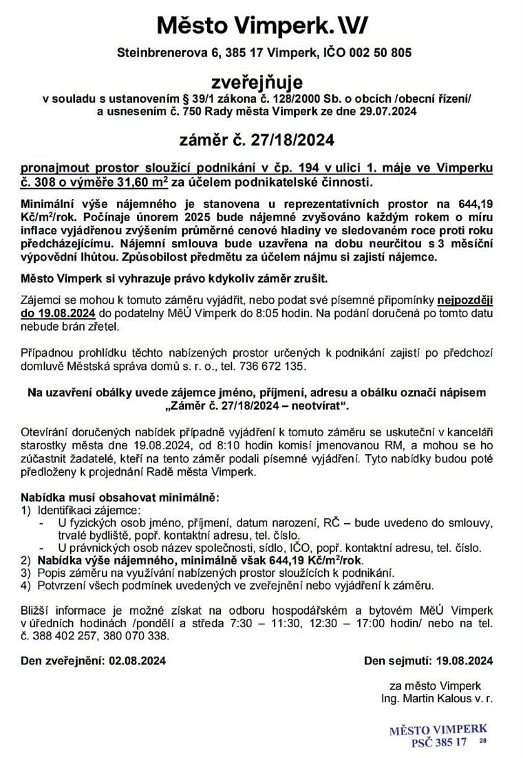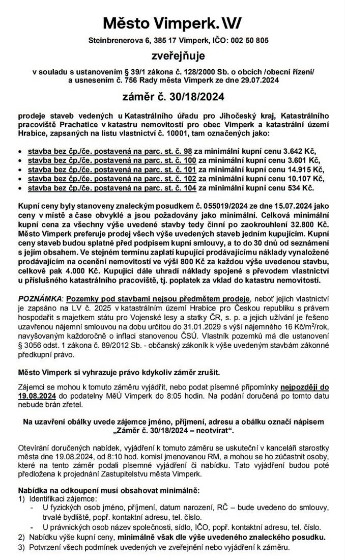 NAŠE MĚSTO VIMPERK: Úřední deska radnice – hospodaření s majetkem