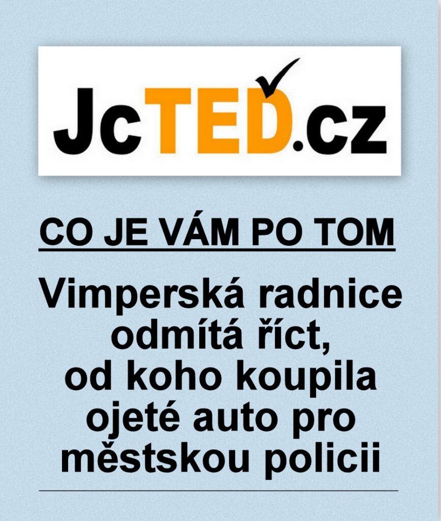 JIŽNÍ ČECHY TEĎ: Vimperská radnice odmítá říct, od koho koupila ojeté auto pro městskou policii