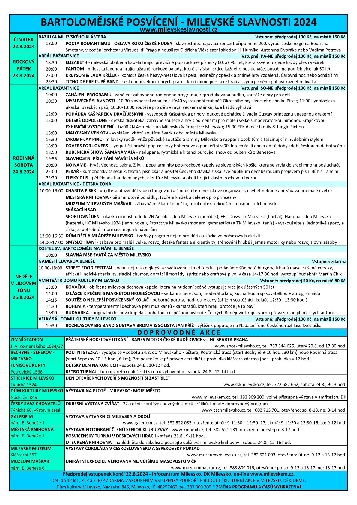 JIŽNÍ ČECHY: Pozvánka na Bartolomějské posvícení v Milevsku s programem, jaký může Vimperk jen závidět
