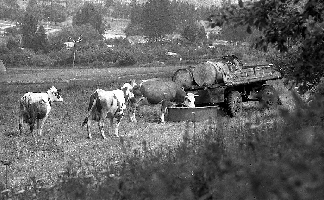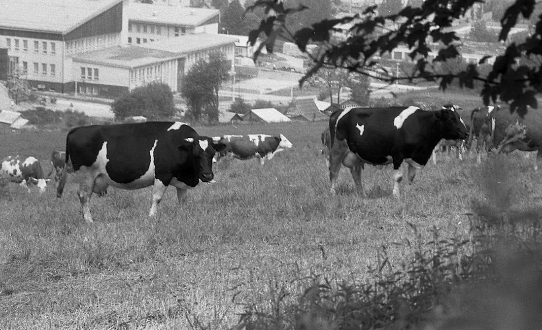 Začátkem osmdesátých let nic neobvyklého – krávy Státního statku Vimperk se pásly na loukách nad městem – pod letním divadlem.