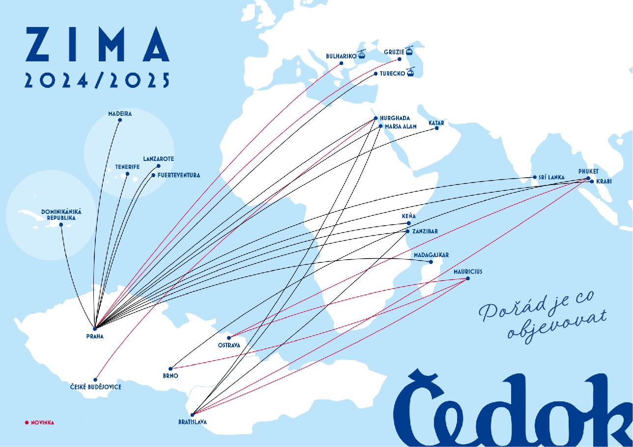 Pro nadcházející zimu bude potom Čedok u letů do exotiky z Prahy i dalších tří letišť spolupracovat s italskou leteckou společností Neos, která na charterové lety nasadí moderní Boeing 787-9 Dreamliner se třemi typy sedadel na palubě. „Podařilo se nám pro zimu navázat novou spolupráci, s Neosem budou létat naši klienti z Prahy, Brna, Ostravy i Bratislavy. Z pražského letiště pokračuje spojení na Madagaskar, do Dominikánské republiky a do thajského Krabi, z ostatních letišť zamíří letadla na thajský Phuket a na Mauricius,“ doplnil Kubáč za Čedok. Vzhledem k velkému zájmu odstartuje dříve oproti původnímu plánu přímé spojení z Letiště Václava Havla Praha na ostrov Nosy Be patřící k Madagaskaru. Chartery zahájí Čedok už od 2. října 2024, tedy ještě během končícího letního letového řádu, a pokračovat budou tradičně do konce roku.