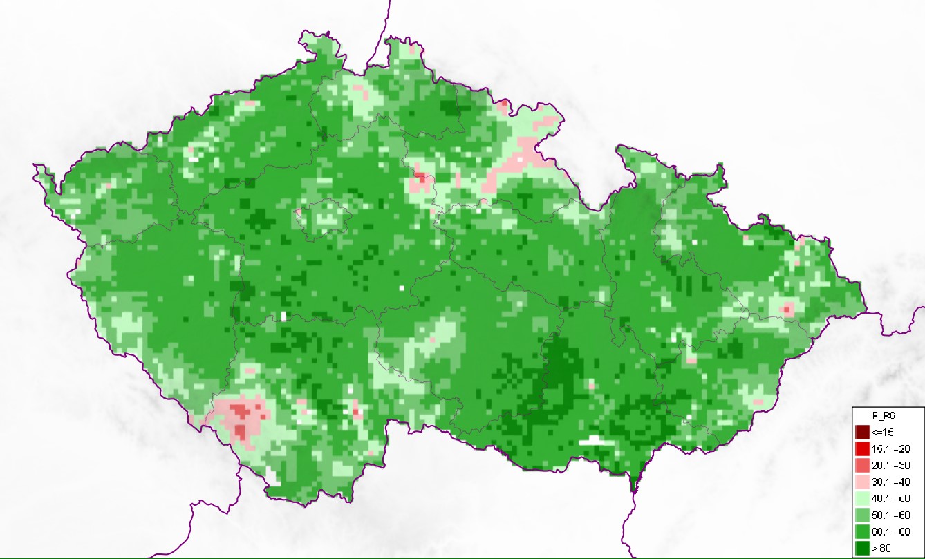 Parametry na vydání bouřkové výstrahy nejsou tedy splněné. Ovšem vzhledem k aktuálnímu nasycení nelze vyloučit, že srážky, byť podlimitní, způsobí lokální problémy. Nejrizikovější oblasti ukazuje přiložená mapa. Na růžově označených místech stačí k problémům necelých 20 mm/hod.