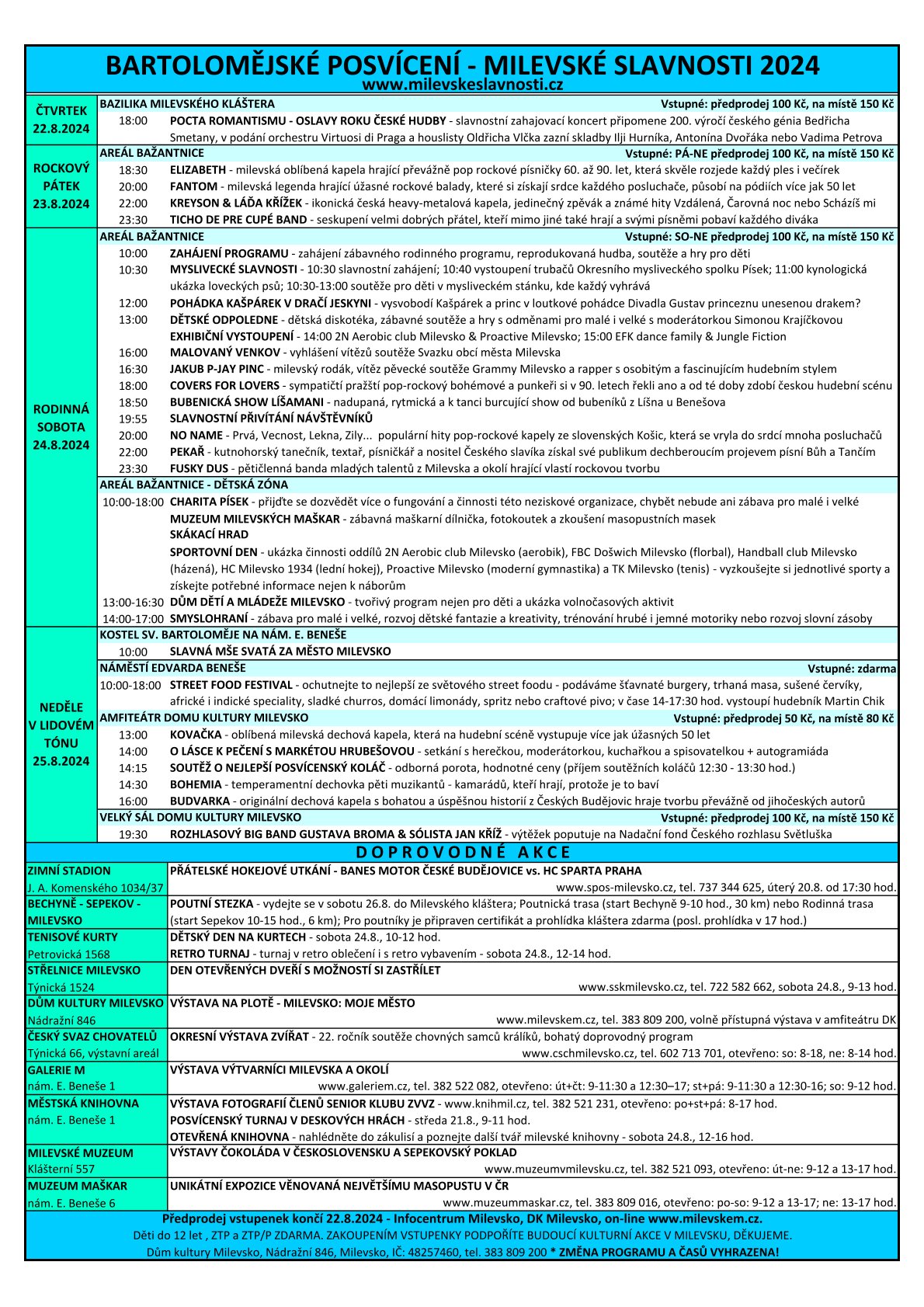 Za změny programu nebo zrušení akcí pořadateli nezodpovídáme.