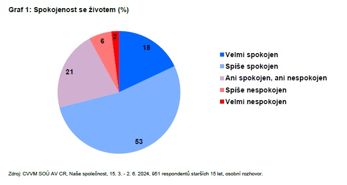 V rámci posledního šetření svého kontinuálního výzkumu Naše společnost, které proběhlo v období od poloviny března do začátku června 2024, Centrum pro výzkum veřejného mínění Sociologického ústavu AV ČR, v.v.i. zařadilo pravidelnou otázku týkající se hodnocení spokojenosti se svým životem.
