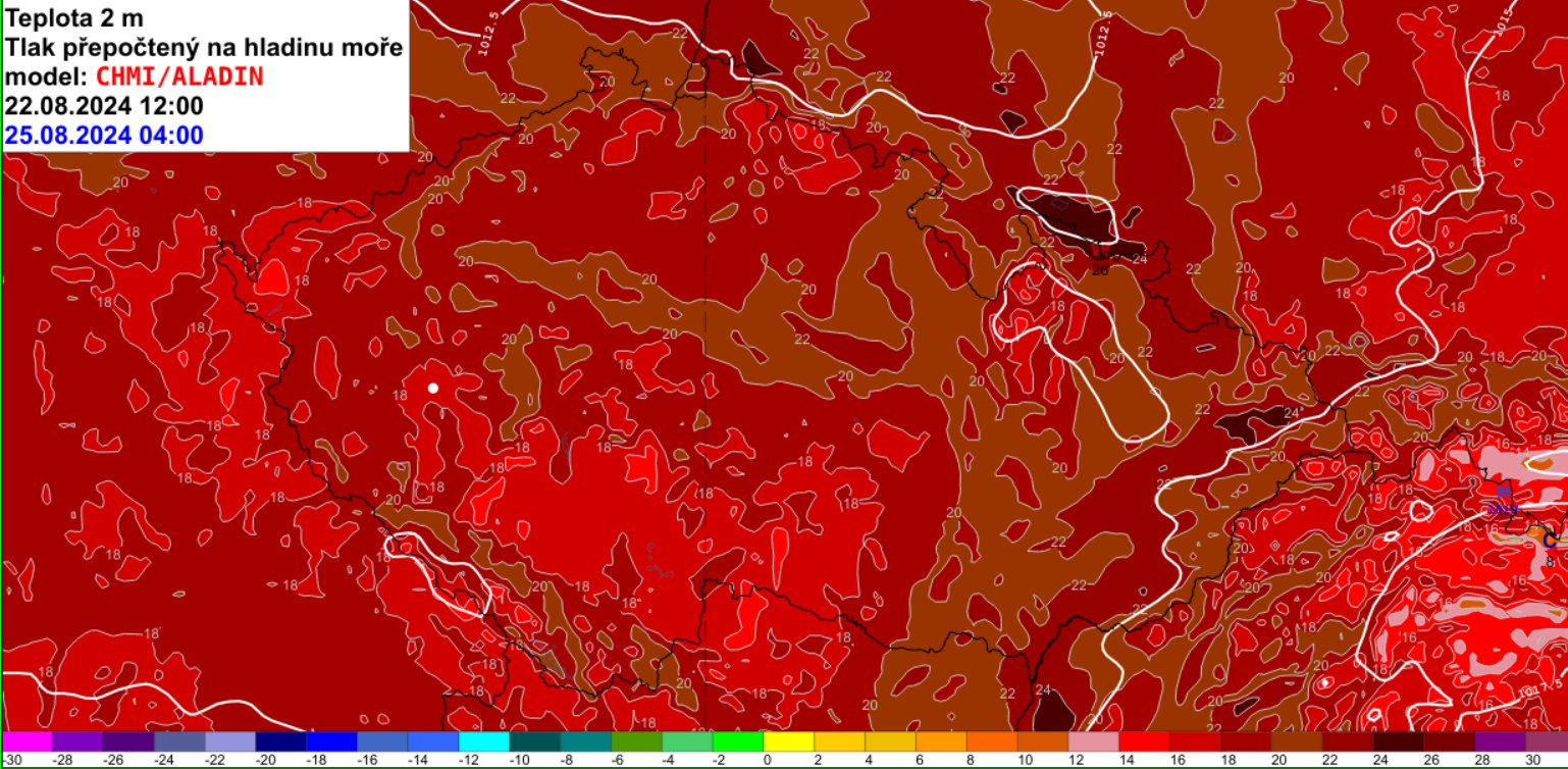 Níže teploty v neděli brzy ráno dle modelu Aladin.