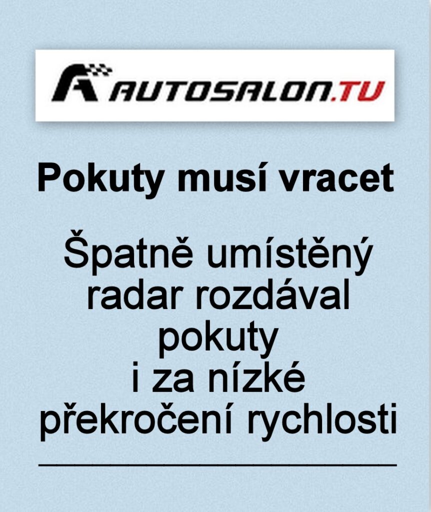 Domů JINÁ MÉDIA AUTOSALON.TV: Špatně umístěný radar rozdával pokuty i za nízké překročení rychlosti. Teď...