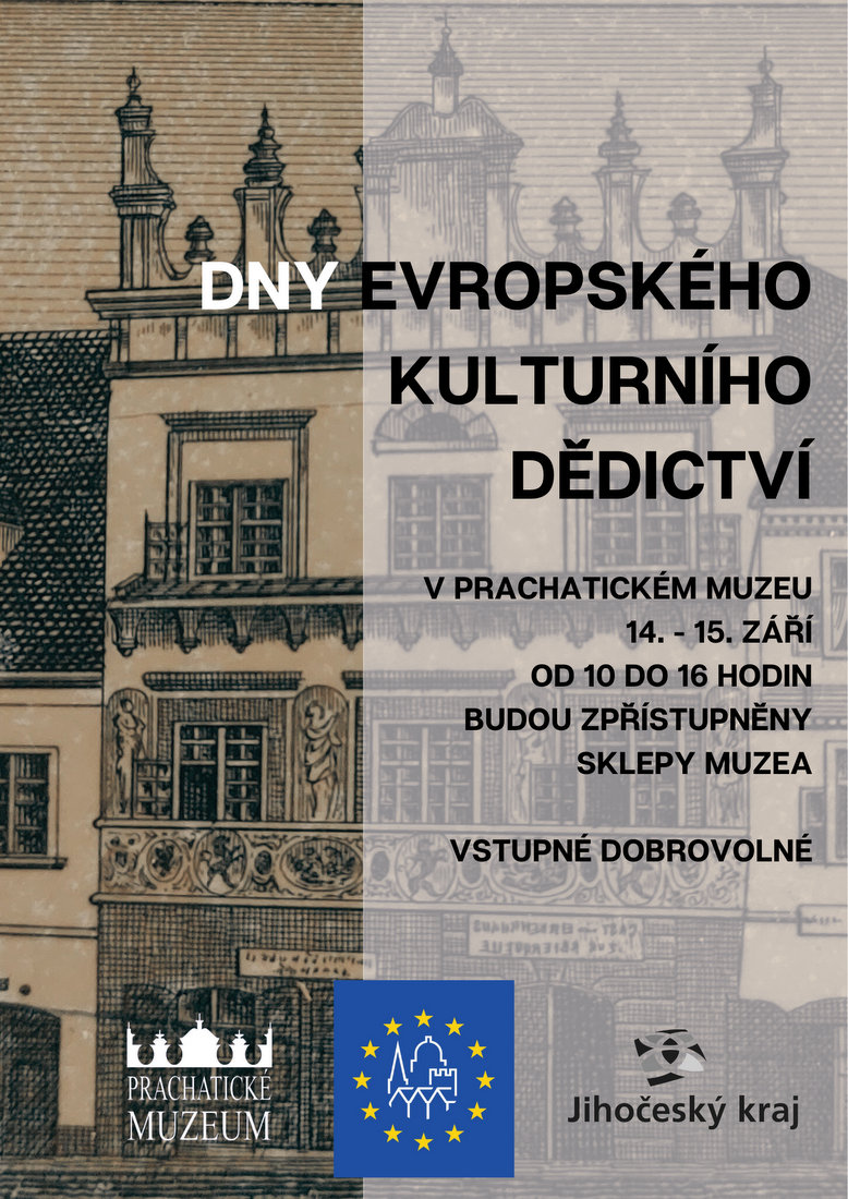 Ve dnech 14. – 15. září 2024 budou probíhat v Prachaticích Dny evropského kulturního dědictví. V rámci této akce budou zpřístupněny zajímavé památky a místa. Cílem této významné celoevropské kulturně poznávací, společenské a výchovné akce je rozšíření všeobecného povědomí o kulturním dědictví. V Prachatickém muzeu budou o tomto víkendu zpřístupněny sklepy. Po celou dobu konání Dnů evropského kulturního dědictví je vstupné do muzea dobrovolné.