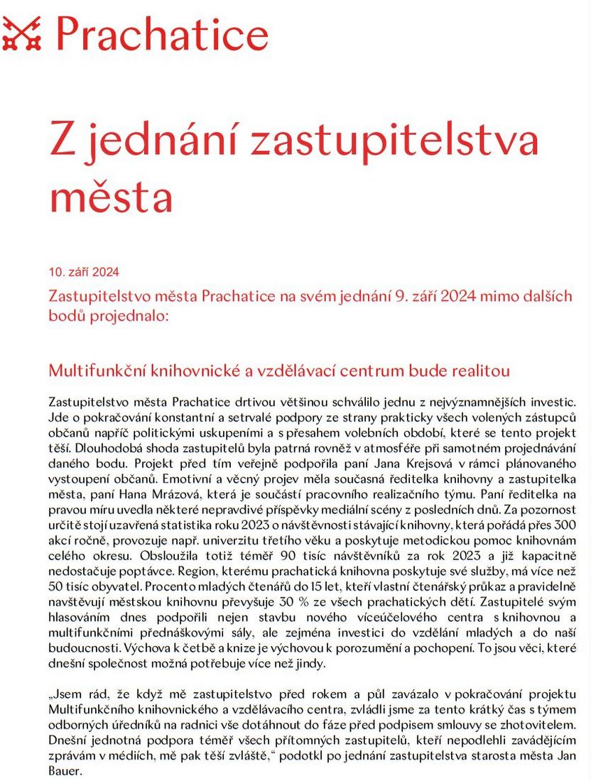 Domů ZPRÁVY Z MĚSTA A JIHU ČECH JIŽNÍ ČECHY: Co se děje v Prachaticích. Informace z jednání zastupitelů města