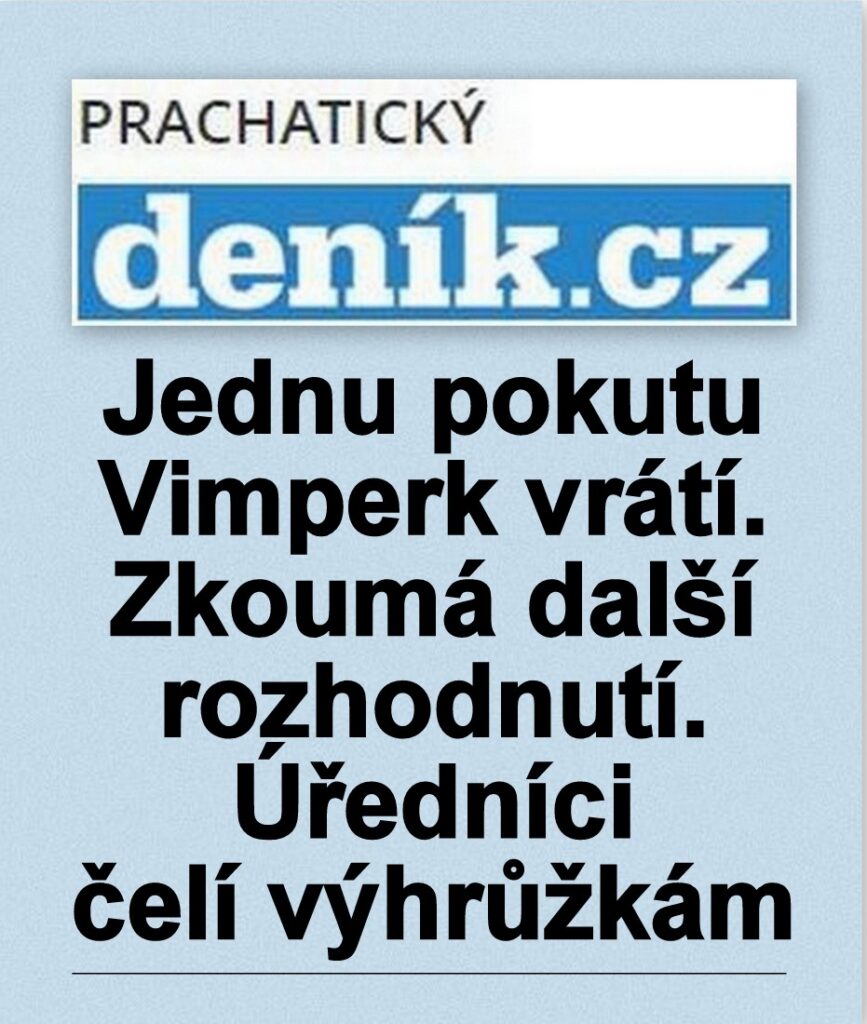 Domů JINÁ MÉDIA PRACHATICKÝ DENÍK: Jednu pokutu Vimperk vrátí. Zkoumá další rozhodnutí. Úředníci čelí výhrůžkám