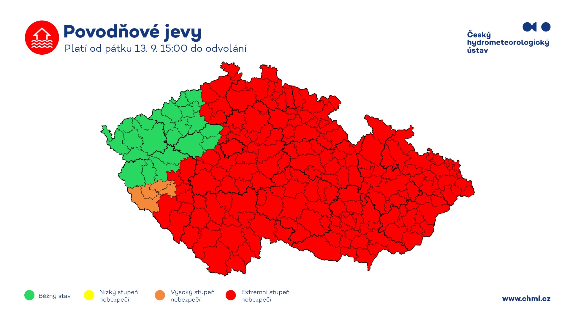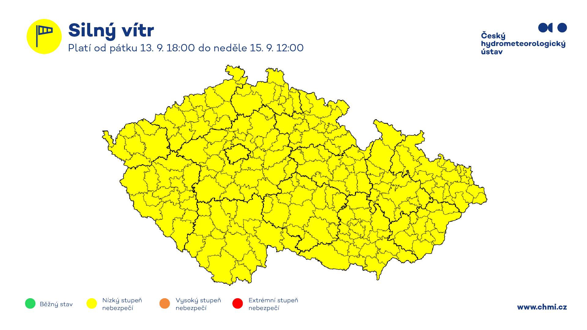 ČESKÝ HYDROMETEOROLOGICKÝ ÚSTAV: Aktualizace výstrahy – pátek 13. září