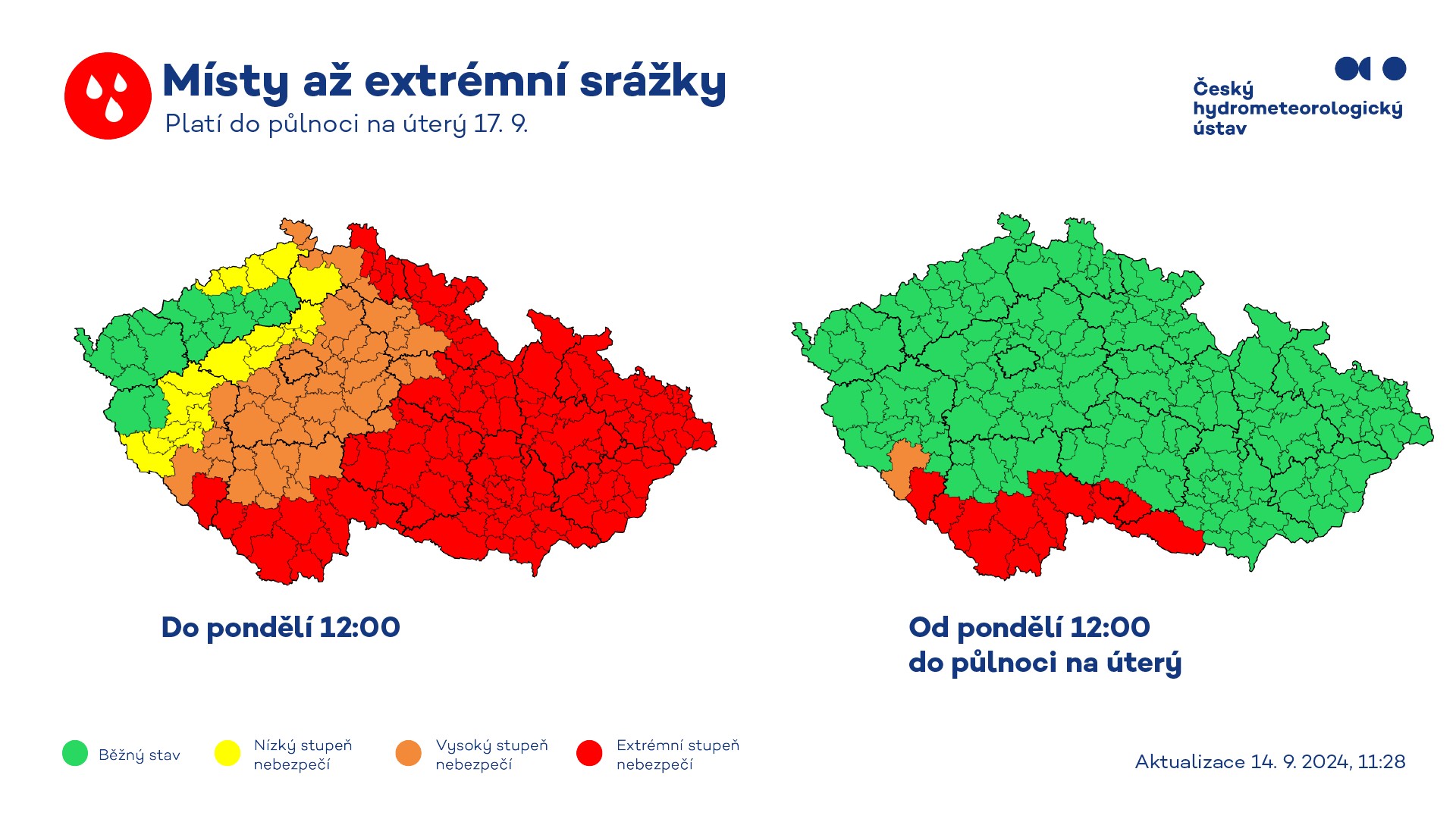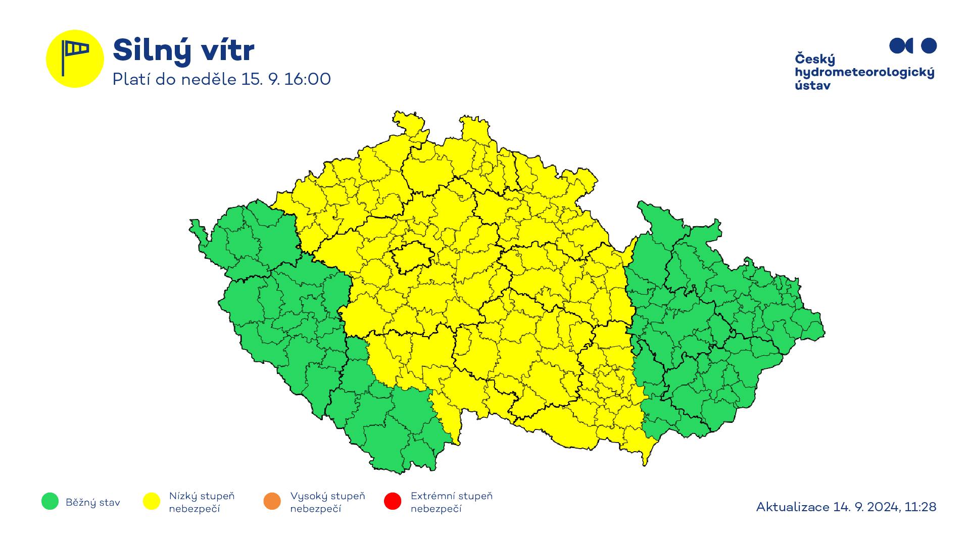 ČESKÝ HYDROMETEOROLOGICKÝ ÚSTAV: Aktualizace výstrahy – sobota 14. září