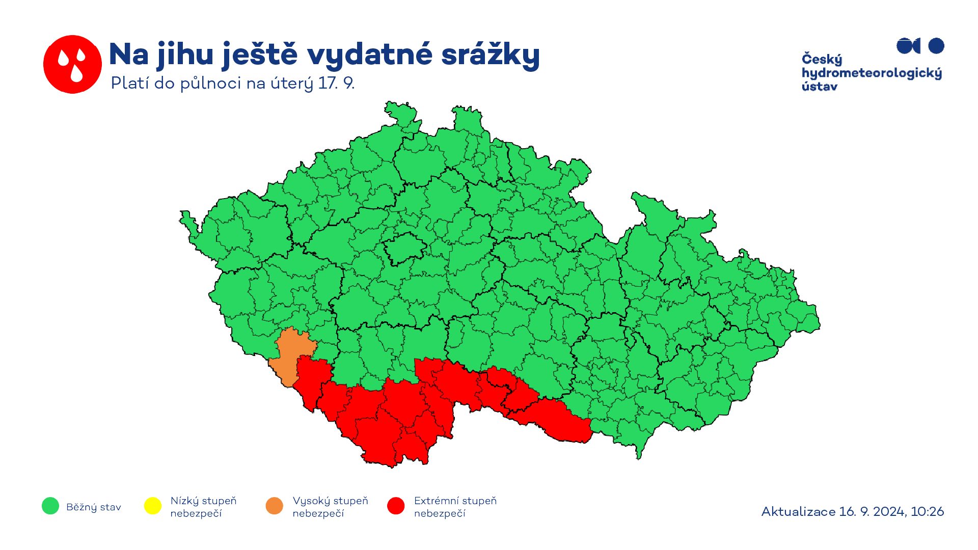 ČESKÝ HYDROMETEOROLOGICKÝ ÚSTAV: Aktualizace výstrahy – 16. září