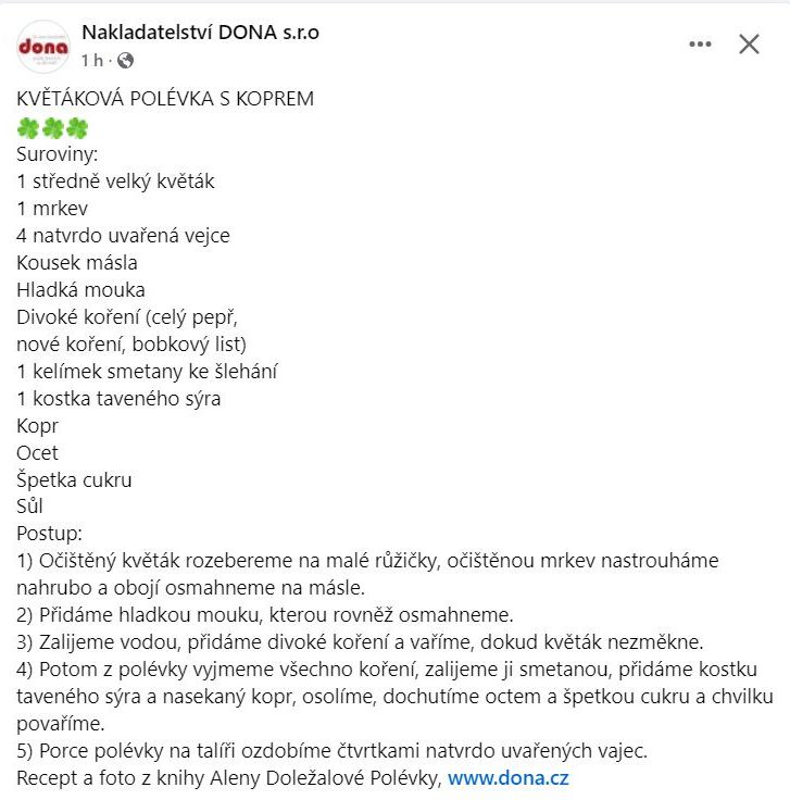 RECEPTY Z KUCHYNĚ: Květáková polévka s koprem