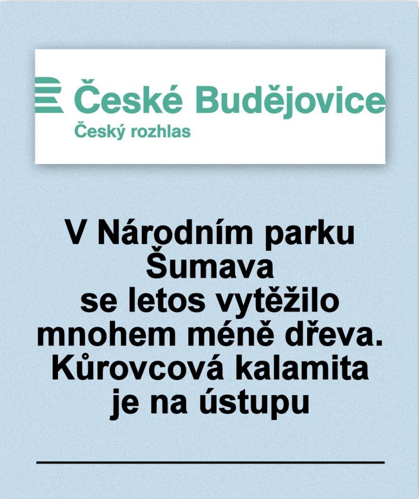 ČESKÝ ROZHLAS: V Národním parku Šumava se letos vytěžilo mnohem méně dřeva. Kůrovcová kalamita je na ústupu