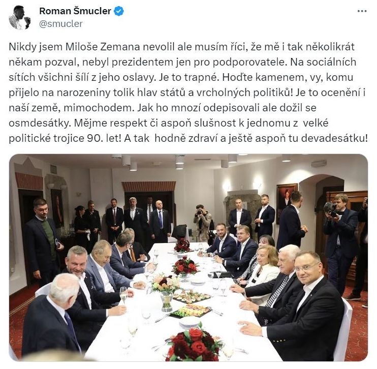 KOMENTÁŘ NA SÍTI: Oslava 80. narozenin Miloše Zemana