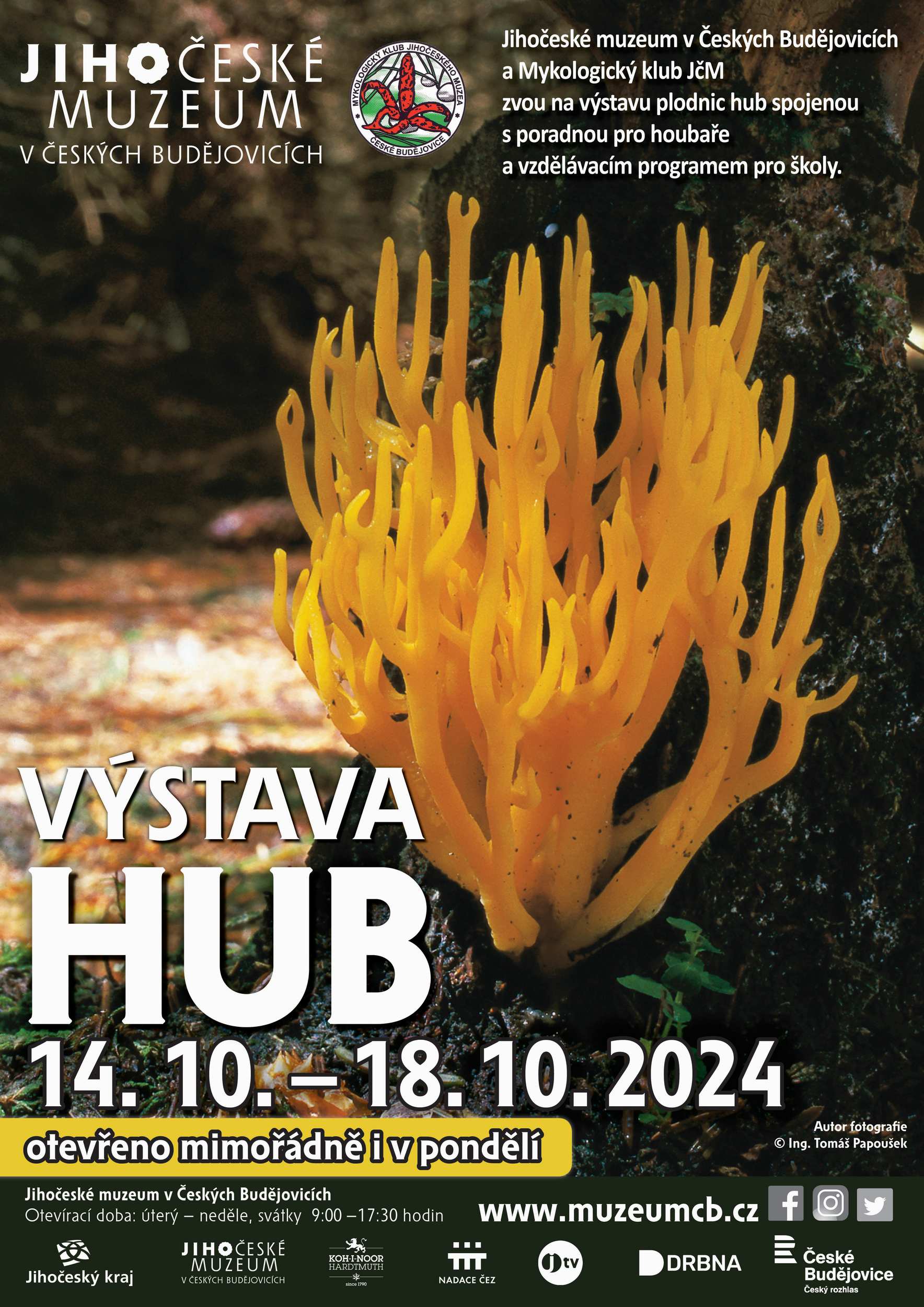 Tradiční výstava plodnic hub opatřených štítky se základními informacemi o jednotlivých druzích. Představuje průřez podzimního aspektu jihočeské mykobioty.
