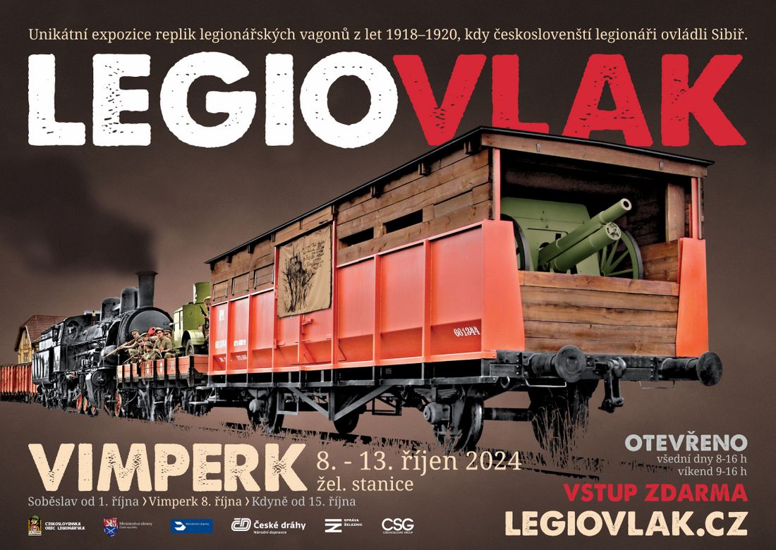 Od úterý 8. do neděle 13. října se na železničním nádraží ve Vimperku zastaví pojízdná expozice Legiovlak, která návštěvníkům přiblíží život československých legionářů za občanské války v Rusku. Prohlídka bude umožněna ve všední dny od 8 do 16 hodin, o víkendu pak od 9 do 16 hodin. Vstupné je zdarma.