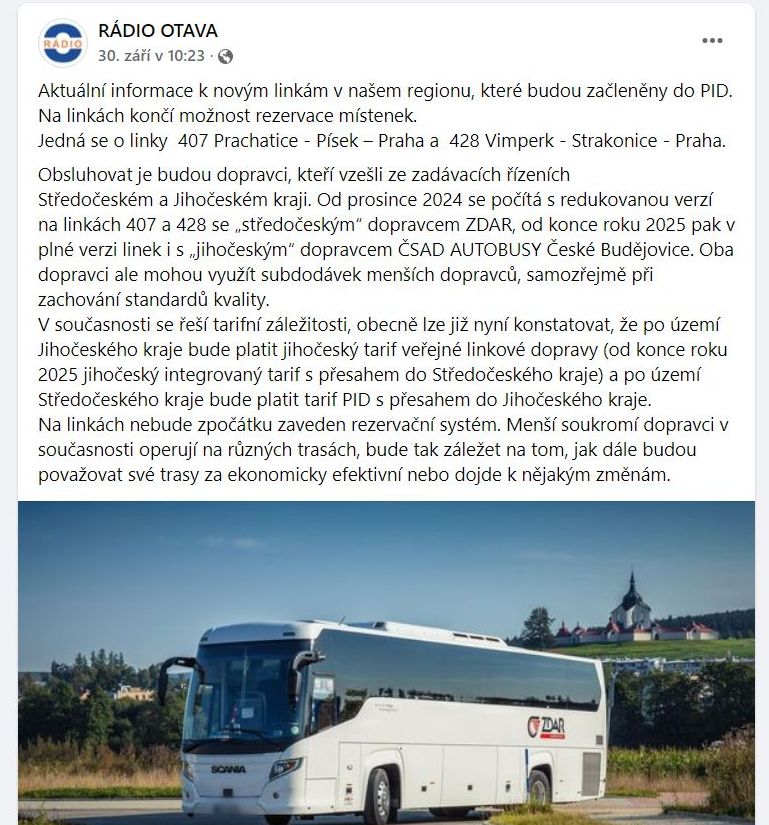 Linky 407 a 428 jsou společnou aktivitou Jihočeského a Středočeského kraje, resp. jejich organizátorů dopravy JIKORD a IDSK.