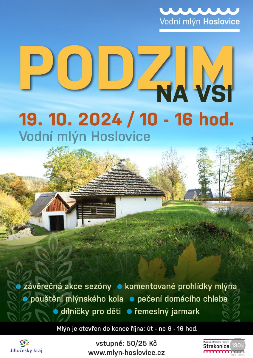 Rádi bychom Vás pozvali do vodního mlýna v Hoslovicích na poslední akci této sezony.