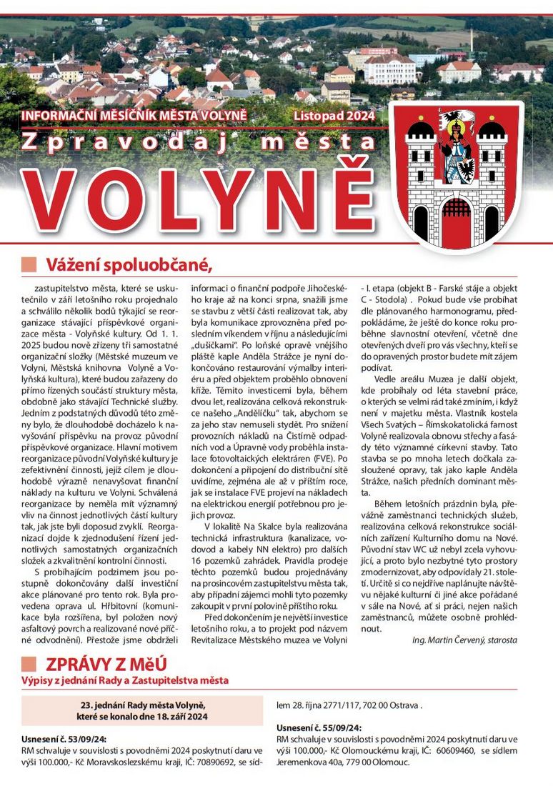 PŘEČTĚTE SI U NÁS: Zpravodaj města Volyně – č. 11/2024