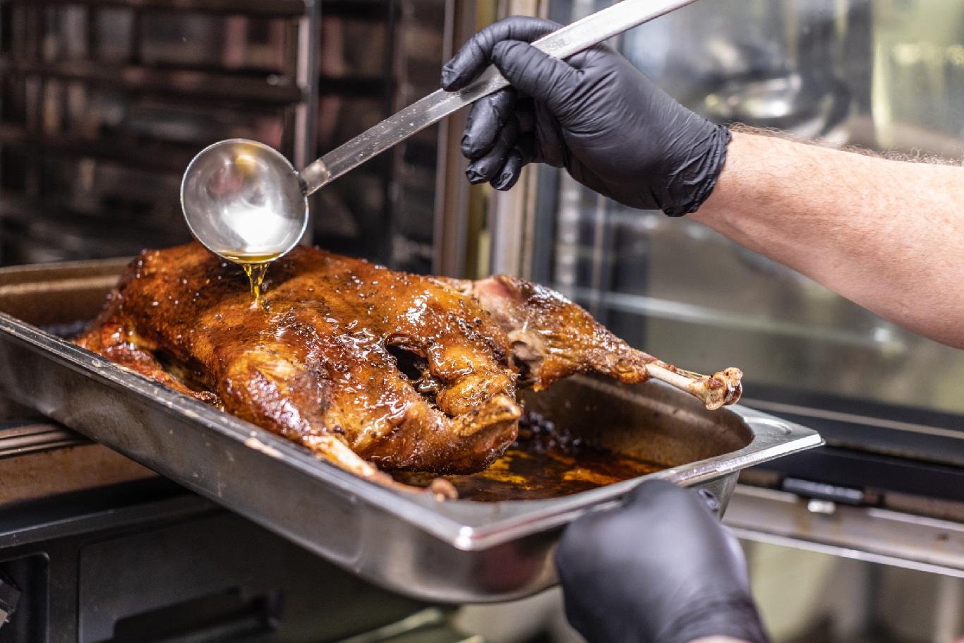 Husí speciality a suroviny z místních zdrojů najdete také v Pivnici Zvon na Náměstí Přemysla Otakara II. v centru Českých Budějovic. Generální manažer Grandhotelu Zvon Zdeněk Novotný k tomu dodává: “Husu pomalu konfitujeme v sádle přes noc až 14 hodin. Nechybí domácí žemlový knedlík, bramborové drbáky, švestkové červené zelí a husí jus. Jsou to recepty vycházející z tradice česko-vídeňské kuchyně.”