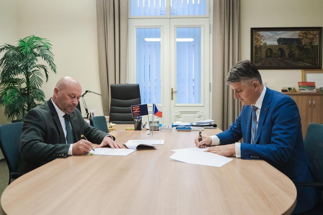 Hradec Králové, 6. listopadu 2024 – Dohodu o postupu při majetkoprávním vypořádání podepsali ve středu 6. listopadu v Praze generální ředitel Lesů ČR Dalibor Šafařík a generální ředitel Správy železnic Jiří Svoboda.