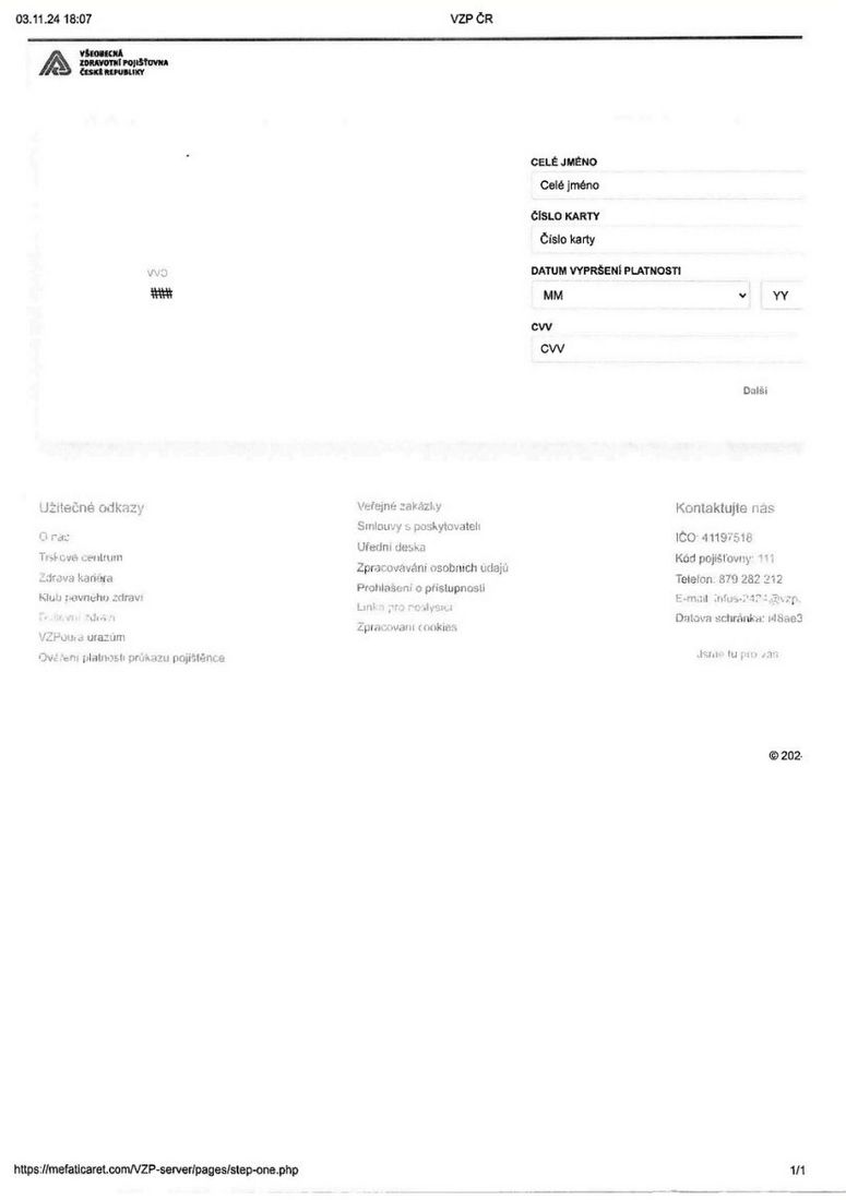 Všeobecná zdravotní pojišťovna se od prvních listopadových dní setkává s novou formou podvodného jednání. Klienti se na ni obrací s dotazem na pravost přijatého e-mailu zaslaného právě pod hlavičkou VZP ČR. Ten obsahuje odkaz s výzvou k přihlášení do bankovnictví (vyplnění údajů) za účelem „refundace“ blíže nespecifikovaných přeplatků u VZP. Jedná se o další formu podvodu. VZP žádné částky tímto způsobem nevyplácí, od klientů nikdy nepožaduje přihlášení k bankovnímu účtu prostřednictvím e-mailu (nebo zprávy SMS).