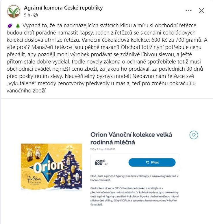KOMENTÁŘ NA SÍTI: Facebook – Ceny vánočních kolekcí