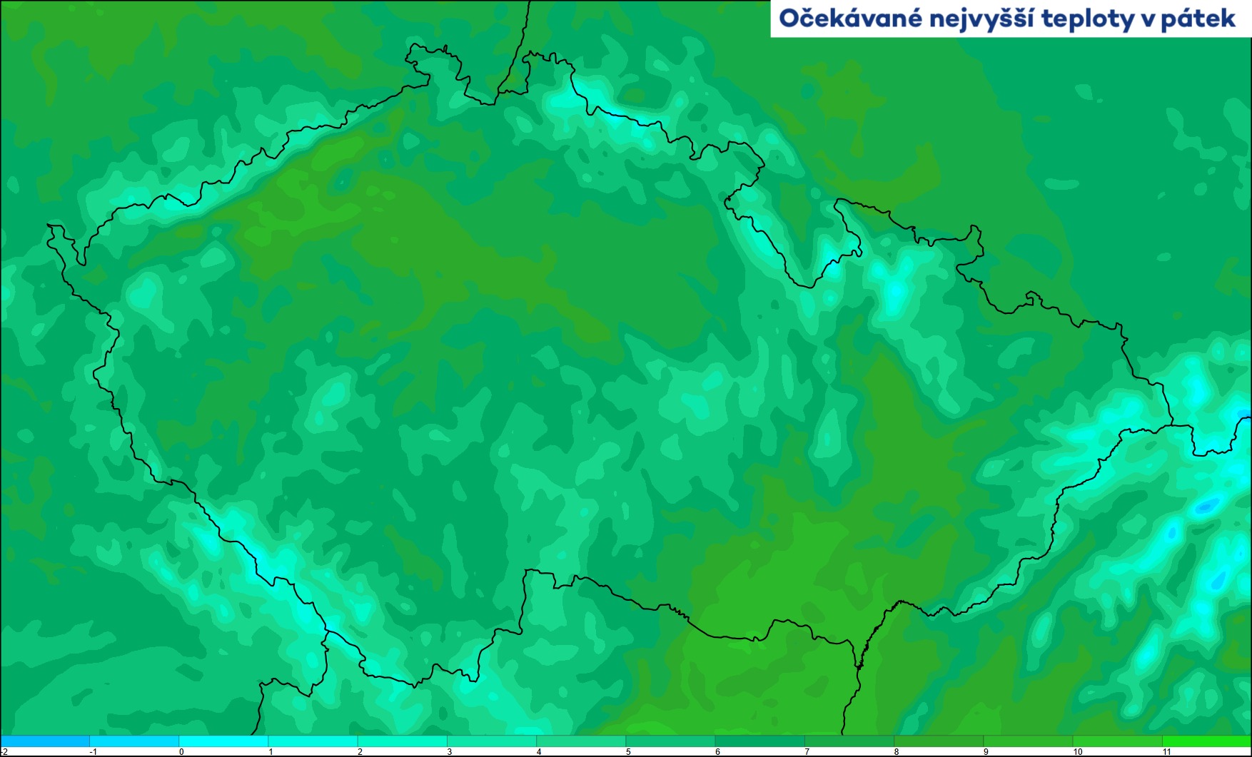 Včera byly nejvyšší teploty v Tušimicích 4,8 °C a v Kopistech 4,7 °C. Dnes už budou teploty o něco vyšší a v pátek se znovu slabě oteplí. Teploty se budou nesměle zvyšovat až do neděle, ale ty noční zůstanou kolem nuly.