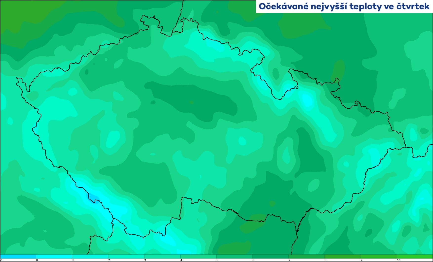 Dnes a zítra bude hodně oblačnosti, víkend pak bude hlavně odpoledne slunečnější. Oblačnost přibude zase na začátku příštího týdne. Nejdřív bude místy až 10 °C, během týdne se bude postupně ochlazovat a od vyšších poloh může sněžit.